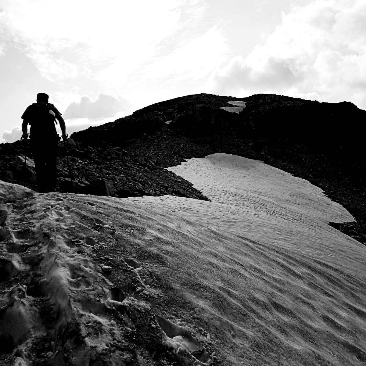 L’arsura del sole, che in quota brucia la pelle più che a riva, il vento, che sferza quei sabbioni lunari e, appunto, il ghiaccio, che ancor vi dimora in luglio, protetto da pareti verticali e inaccessibili.